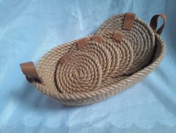 Bandeja en Cestería Nórdica 3- DECORACIÓN, HOGAR y JARDÍN Material: cordón de algodón con alma( relleno de pabilos de algodón) cosido a máquina con hilo resistente n•…