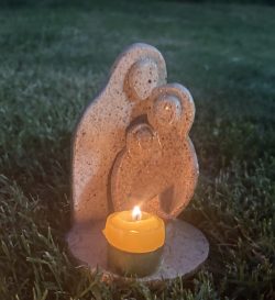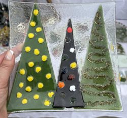 Plato de vidrio 20 x20 con figuras navideñas también de vidrio como sobrecubierta pintado a mano y luego…