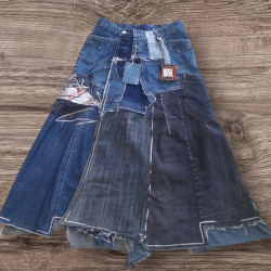 Falda larga de jeans ,diseño único,detalles en Aguayo y lana,talle regulable