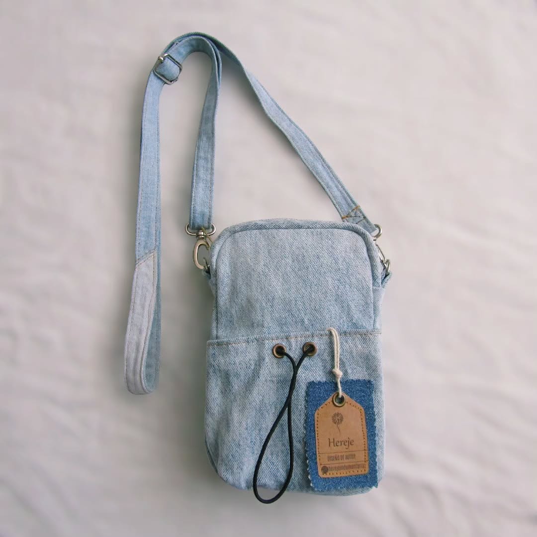 Accesorio confeccionado con jeans reciclado. Este tipo de jeans de segunda mano es seleccionado, pensando en un producto de excelente calidad. La tela de jeans es una de las telas más durareras, por lo tanto,muy resistente. Es una bandolera práctica y funcional, facil de transportar, posee cierre de metal, cordon elástico en su bolsillo interno y una correa regulable que se adapta a cualquier persona. Medidas: 29cm de alto x 11,5 ancho x 3cm de profundidad.