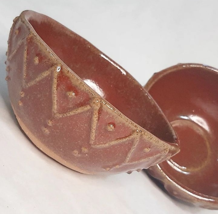Cuencos modelados a mano. El esmaltado lo fabrico personalmente. En este caso el cuenco de color arena, posee pigmentos naturales recolectados en el lago.