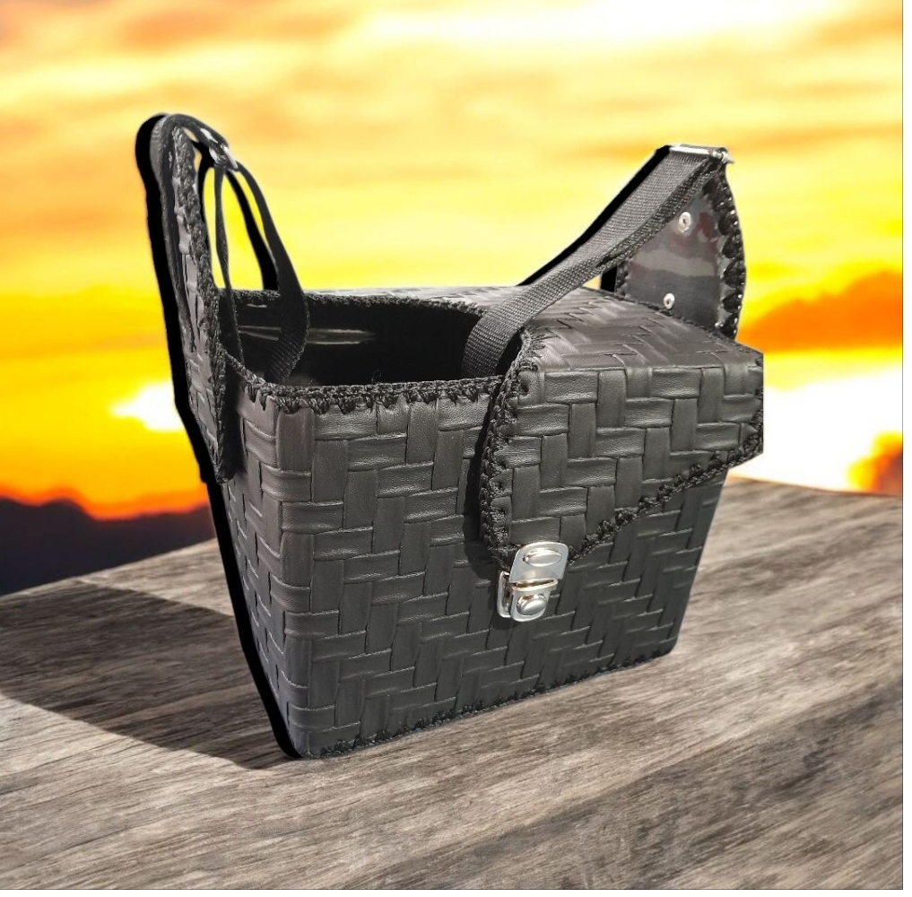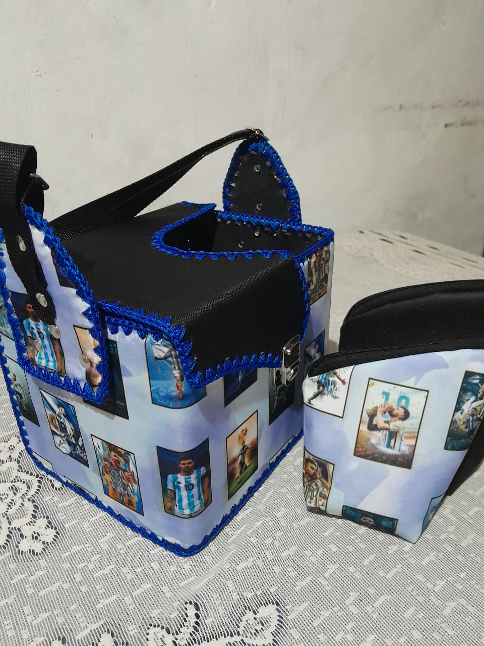 Se realiza en cartón forrado con cuerina y terminación tejido a crochet
