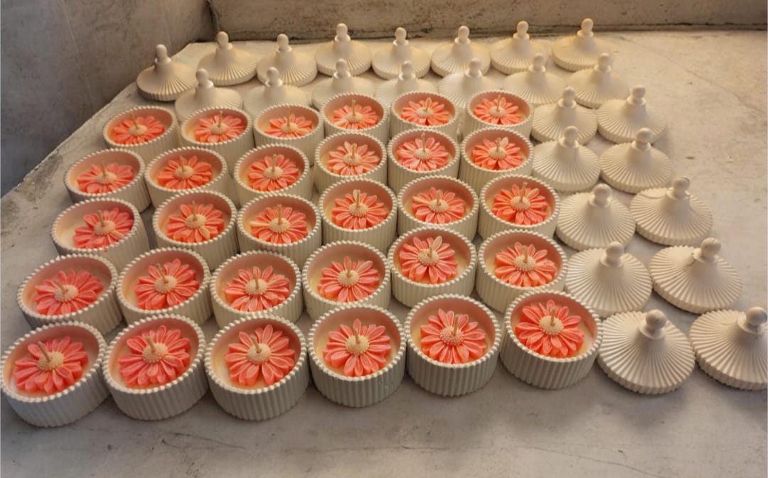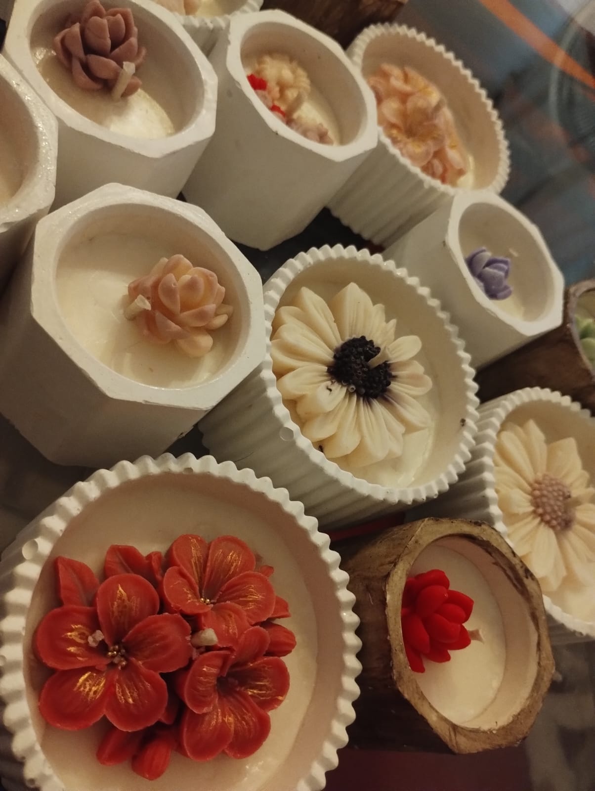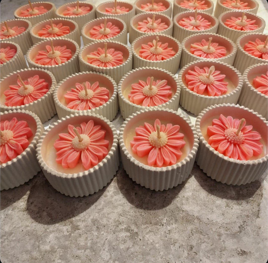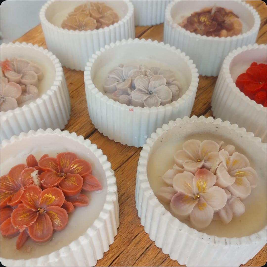 Velas aromáticas artesanales elaboradas con cera de soja, diseñadas para crear ambientes cálidos y armoniosos. Cada vela está decorada con delicadas flores de cera que le dan un estilo elegante y natural, convirtiéndola tanto en una pieza aromática como decorativa. Se destacan por su presentación delicada y estética, ideales para regalar o decorar cualquier espacio. Las bases están hechas de yeso cerámico artesanal, lo que aporta firmeza, estilo y permite reutilizarlas luego como contenedor decorativo. ✨ Características: Cera de soja aromática Decoración floral artesanal en cera Base de yeso cerámico hecha a mano Combina decoración y fragancia Ideal para regalos, souvenirs o ambientar espacios Una vela pensada para perfumar, decorar y transmitir calma en cada rincón del hogar.