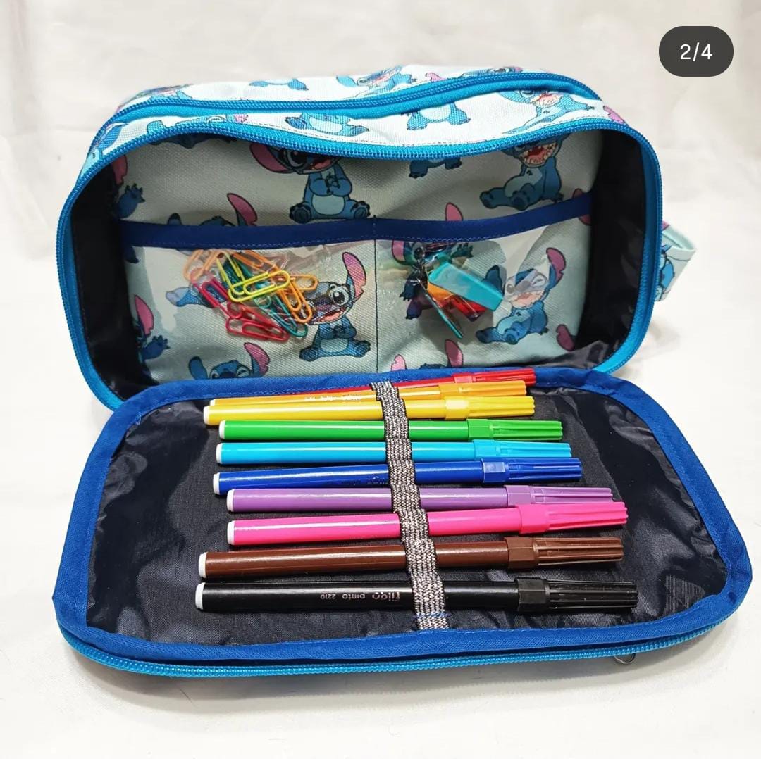 Es una cartuchera ideal para organizar útiles (escolares, de oficina, etc.). La misma se destaca por tener varios bolsillos y compartimentos como se observa en las imágenes, lo que permite una mejor organización. Está confeccionada con cierres reforzados; en su exterior con cordura estampada y su interior se encuentra forrado con silver. Los bolsillos están realizados con nylon cristal o biyonet (tela red). En su interior todas las costuras quedan ocultas por cinta bies, lo que le da una terminación más prolija. Cuenta con un asa de agarre cosida en uno de los laterales cortos, fabricada con la misma cordura estampada, lo que facilita su transporte. ACLARACIÓN: el estampado de la cordura queda sujeto a elección de la persona del catálogo de estampas que tenemos a disposición.