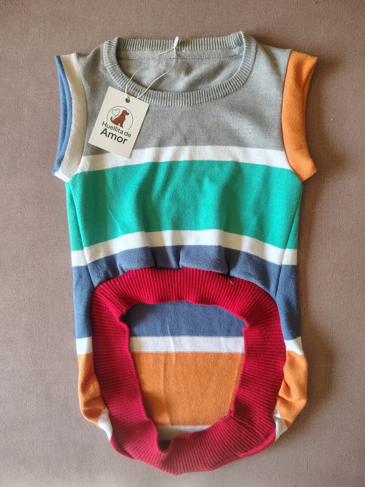 Sweater recuperado y reciclado, talle XL, largo 54, contorno 58 cm