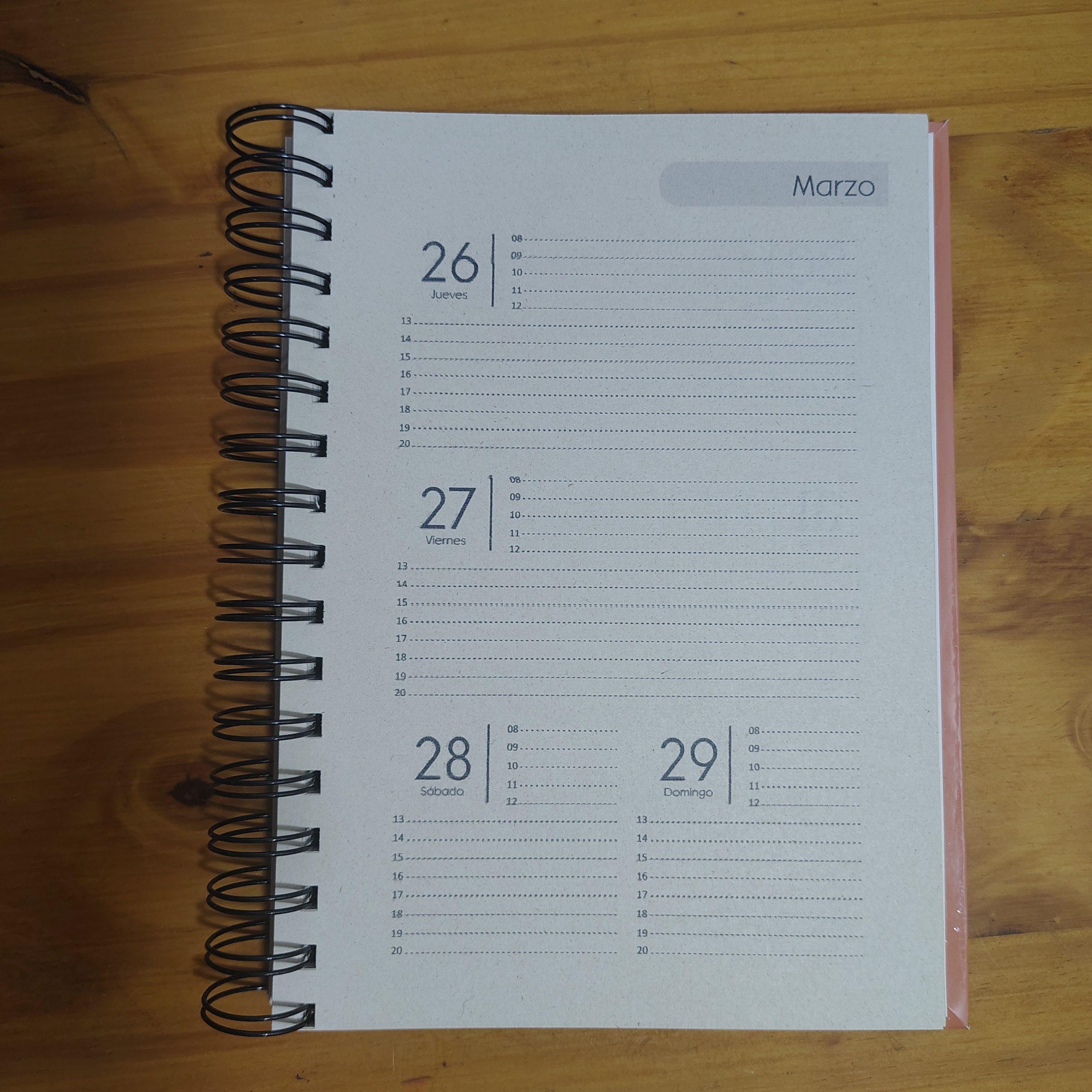 Diseñados para acompañarte en el día a día, los cuadernos y agendas tamaño A5 combinan funcionalidad, diseño y materiales de calidad. Podés elegir entre tapa blanda con espiral plástico o tapa dura con doble anillo de alambre, según el uso y el estilo que prefieras. Los cuadernos están disponibles con hojas lisas, rayadas o cuadriculadas, ideales para escribir, estudiar, dibujar o planificar. Las agendas pueden ser perpetuas o anuales, con distintas disposiciones interiores: semana a la vista o dos días por página, adaptándose a diferentes ritmos y necesidades. Utilizamos interiores de Tienda Emefe, reconocida por su amplio repertorio de diseños, que incluye planners, agendas de turnos, recetarios, interiores educativos para distintos niveles y muchas opciones más. Todas las hojas están impresas en papel Ledesma Nat de 75 g, un papel de excelente calidad, agradable al tacto y apto para una escritura fluida. Además, es ecológicamente responsable, ya que está elaborado a partir de fibras de caña de azúcar. Cada pieza es armada con cuidado, pensada para ser práctica, duradera y única. CANTIDAD DE HOJAS EN CUADERNOS: 50, 80, 100 HOJAS CANTIDAD DE HOJAS EN AGENDAS: ENTRE 70 Y 150 HOJAS SEGÚN MODELO