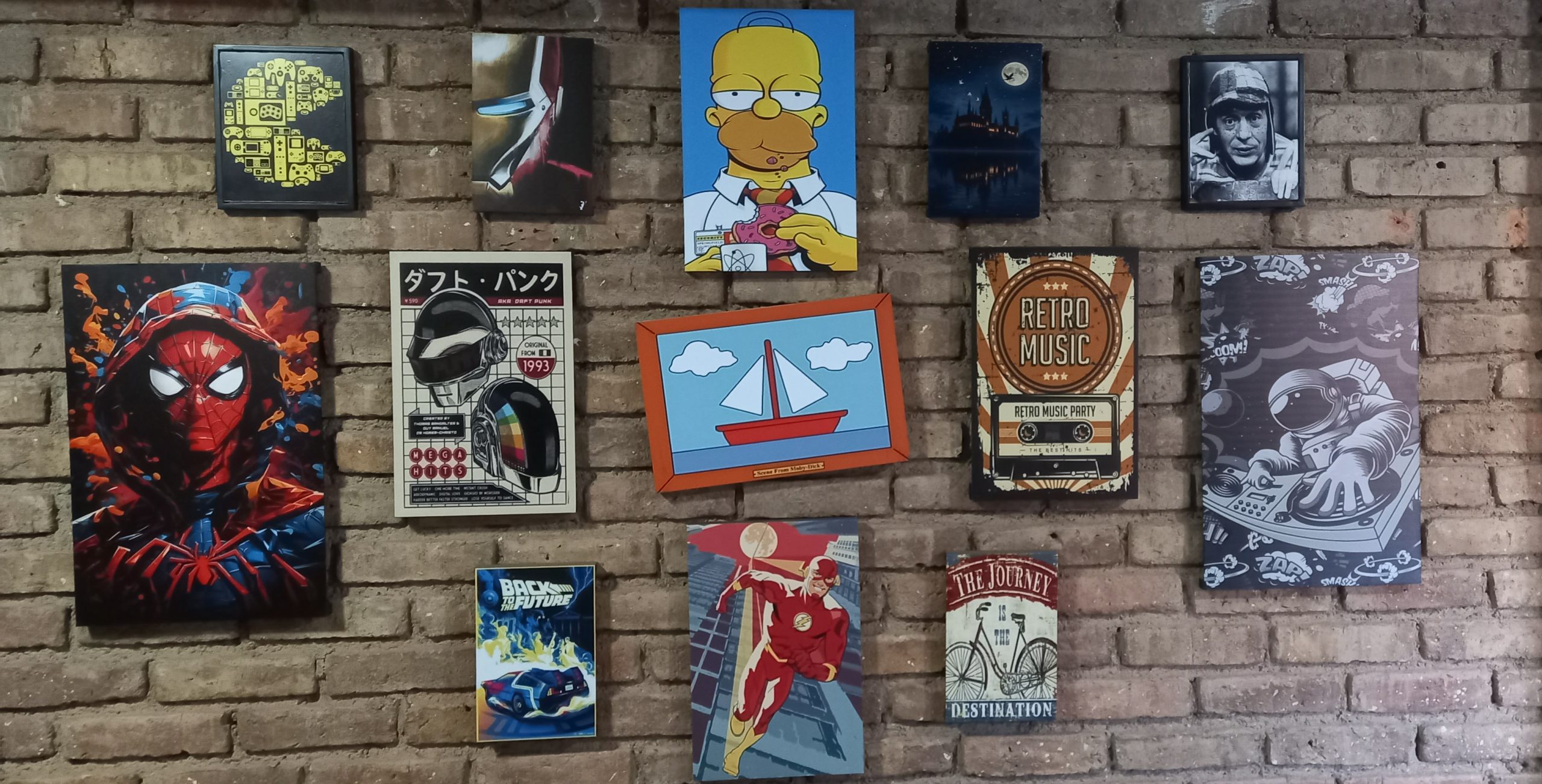 Son de madera de mdf de 3 milímetros, con un bastidor arriba y abajo de 1 pulgada de álamo, todo pintado de negro y las imágenes son impresas en vinilo de alta calidad.