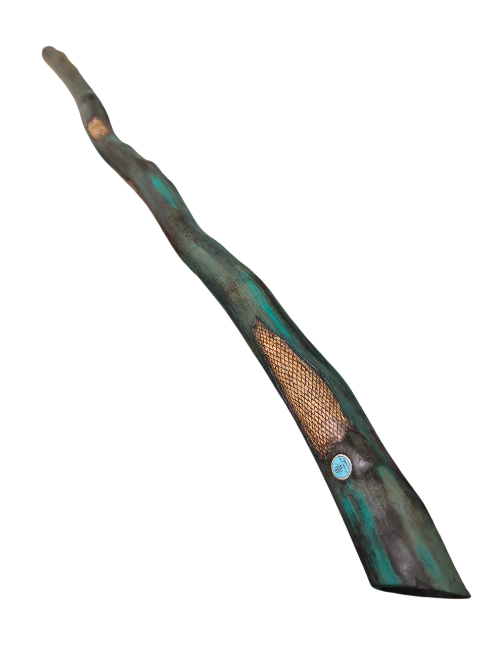 Didgeridoo en madera de eucalipto tallado con detalle de serpiente. Es una pieza única que combina la tradición aborigen con la calidad artesanal. Con un largo de 148 cm y un diámetro de boquilla de 40 mm, este instrumento ofrece una experiencia sonora envolvente y profunda. Fabricado en Mendoza, su cuerpo de eucalipto proporciona un tono cálido y resonante, ideal para quienes buscan meditación y relajación. La afinación en Si 432 Hz permite una conexión armónica con el entorno, favoreciendo la sanación y el bienestar. Su acabado en cera resalta la belleza natural de la madera, mientras que el diámetro del extremo inferior de 70 mm asegura una proyección sonora potente. Tiene la runa Ansuz grabada en piedra, asociada al elemento aire, representa los conocimientos, la comunicación y la transmisión de mensajes. La sabiduría expresada a través del sonido Además, incluye una Funda que facilita su transporte y protección. Este didgeridoo es perfecto tanto para músicos experimentados como para principiantes que deseen explorar el mundo de los sonidos ancestrales. Con su diseño ergonómico y materiales de alta calidad, cada nota que emite es un viaje hacia la calma y la introspección. Ideal para sesiones de yoga, meditación o simplemente para disfrutar de la música en casa. Nota: Si (B)- 432hz Largo: 1,48 mt Diámetro de campana: 7 cm