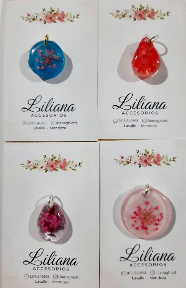 Diseñados a mano con dedicación, cada dije combina la transparencia y brillo de la resina con la delicadeza de flores naturales en su interior. Piezas resistentes, originales y únicas que realzan tu estilo con un detalle especial.