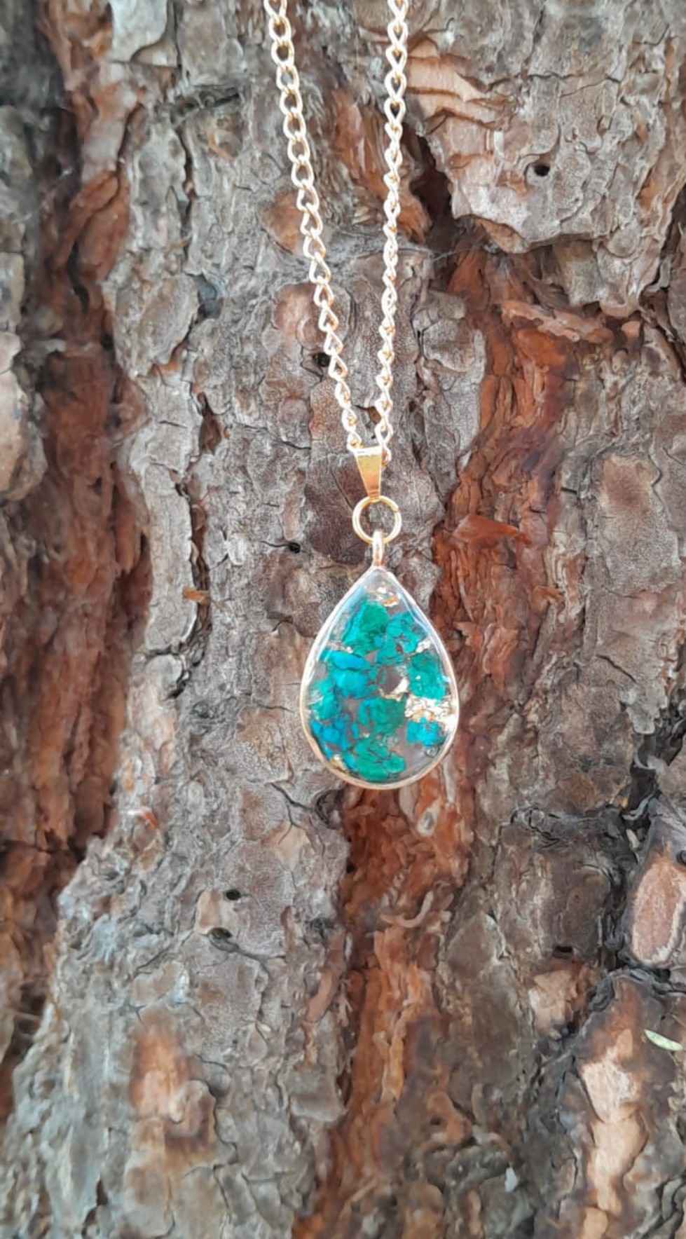 Dijes exclusivos en resina con flores naturales o con piedras.