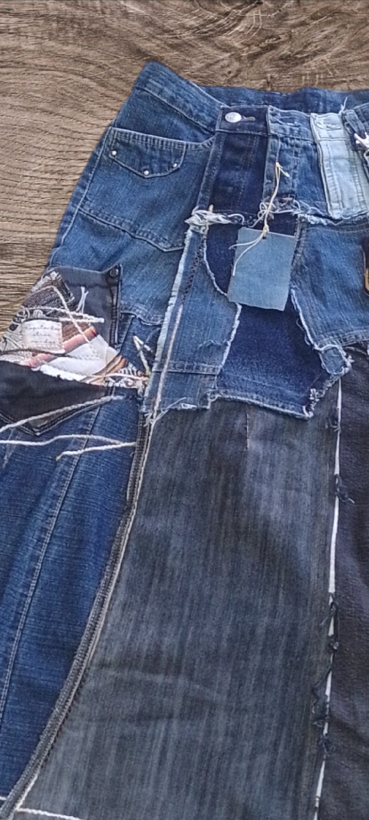 Falda larga de jeans ,diseño único,detalles en Aguayo y lana,talle regulable