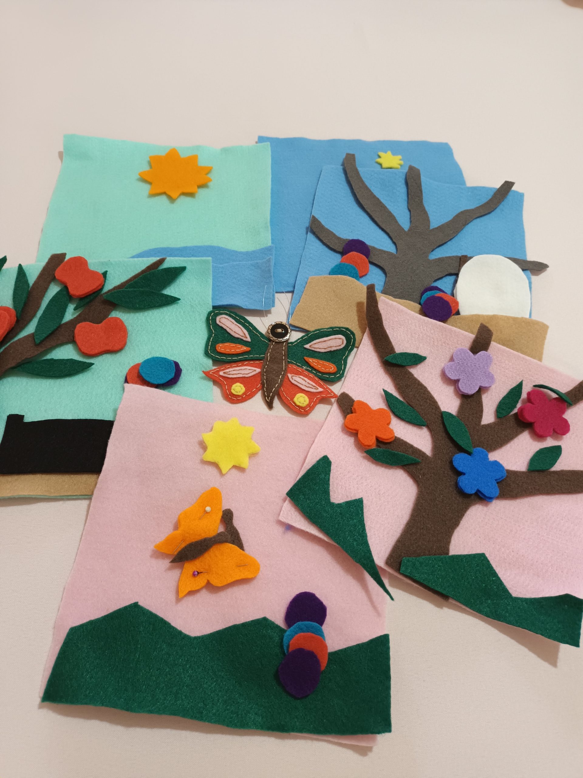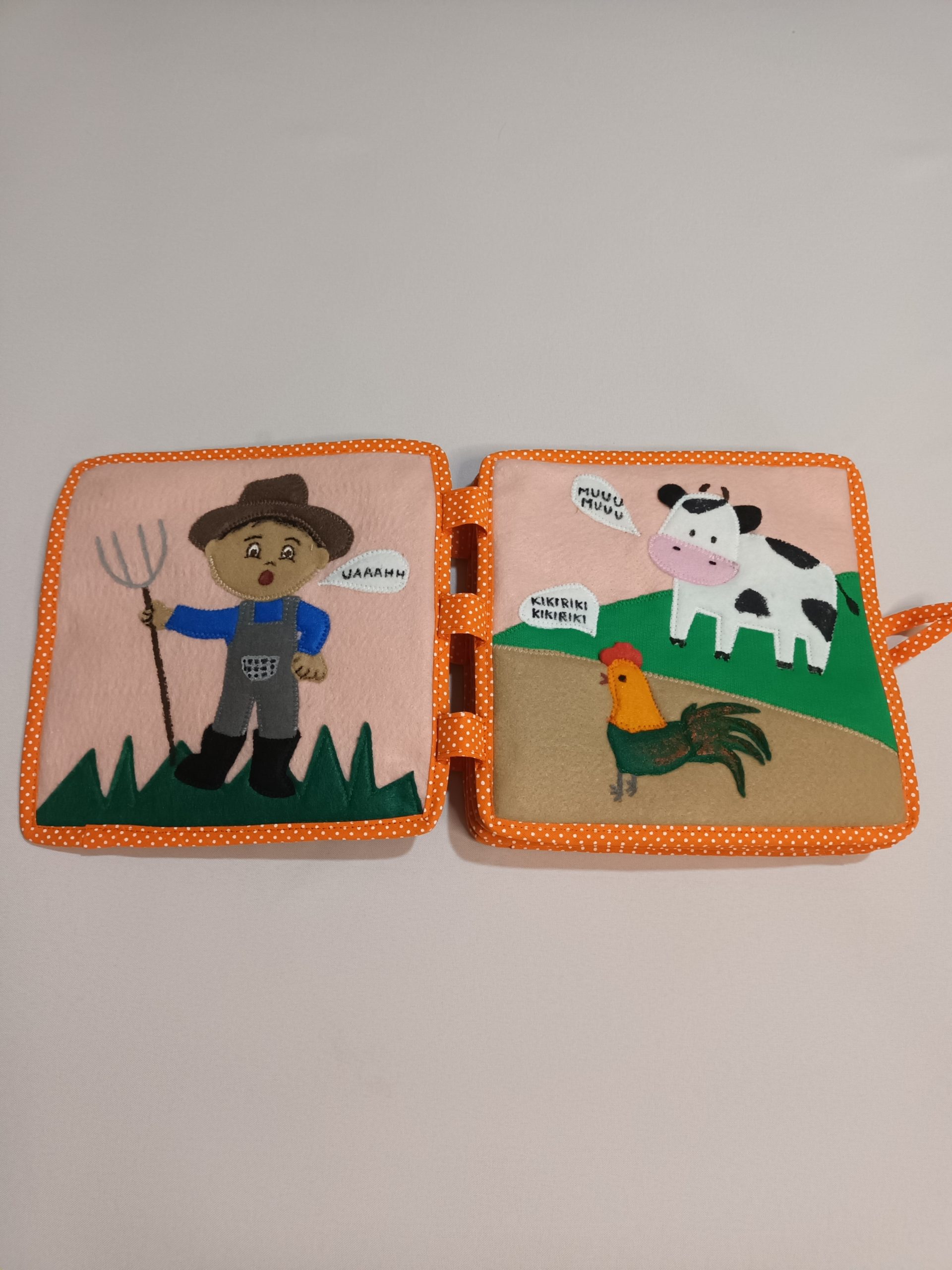 Libros que permiten la experiencia sensorial y la manipulación de diferentes texturas promoviendo el desarrollo de las infancias a través del juego, la creación de historias, la interacción con personajes. Materiales: pañolenci, nylon cristal, friselina, abrojos, tejidos en crochet, diversidad de telas de acuerdo al diseño, bies.