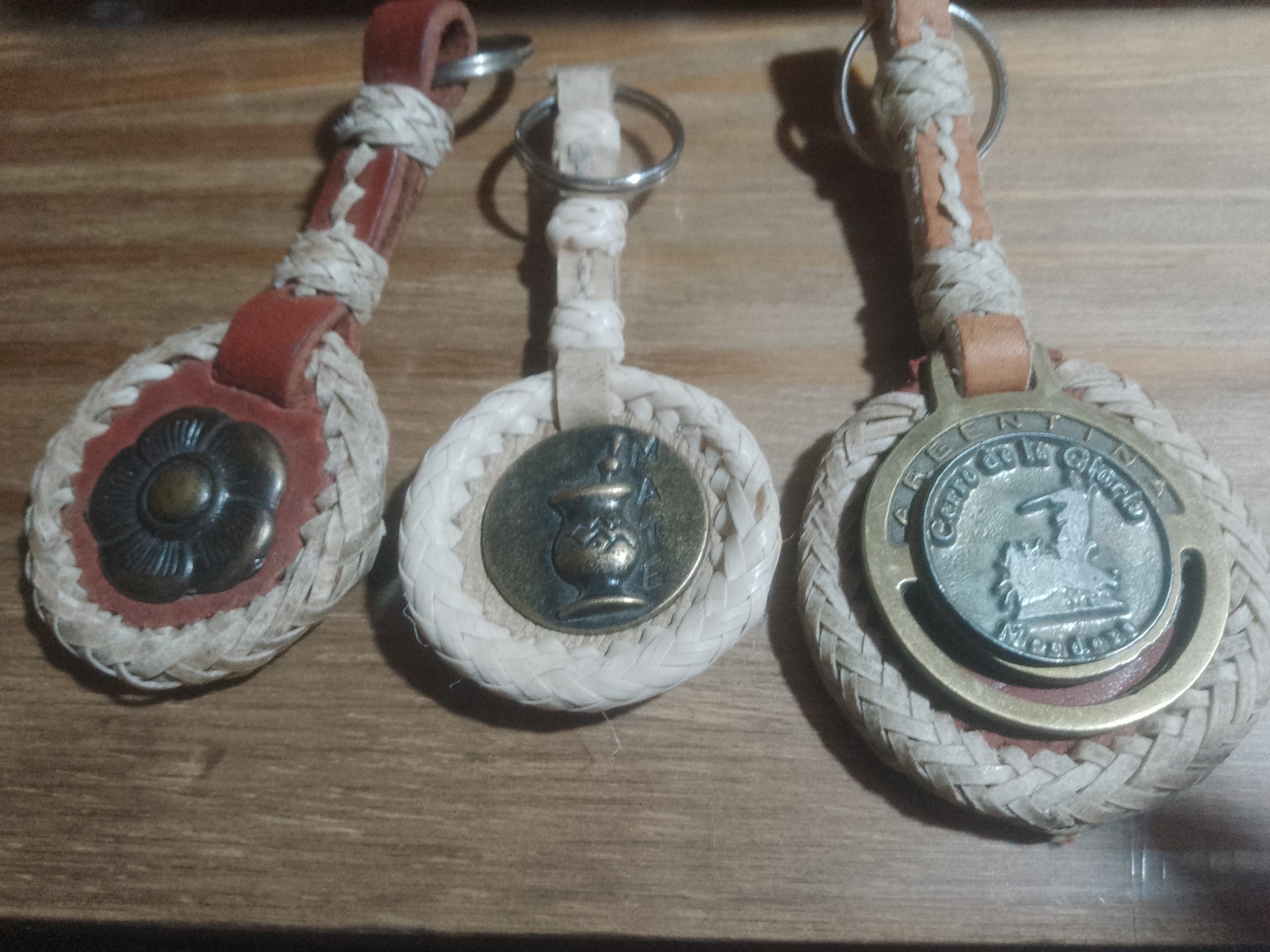 Los llaveros son de cuero.