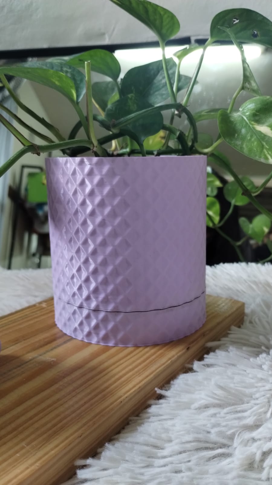 Maceta diseñada con sistema de autoriego integrado, que permite mantener la hidratación adecuada de la planta por más tiempo. Su diseño optimiza el consumo de agua, facilitando el cuidado diario y reduciendo la frecuencia de riego. Fabricada en PLA de excelente calidad mediante impresión 3D, combina funcionalidad, estética moderna y eficiencia. Ideal para interiores, escritorios y espacios reducidos.