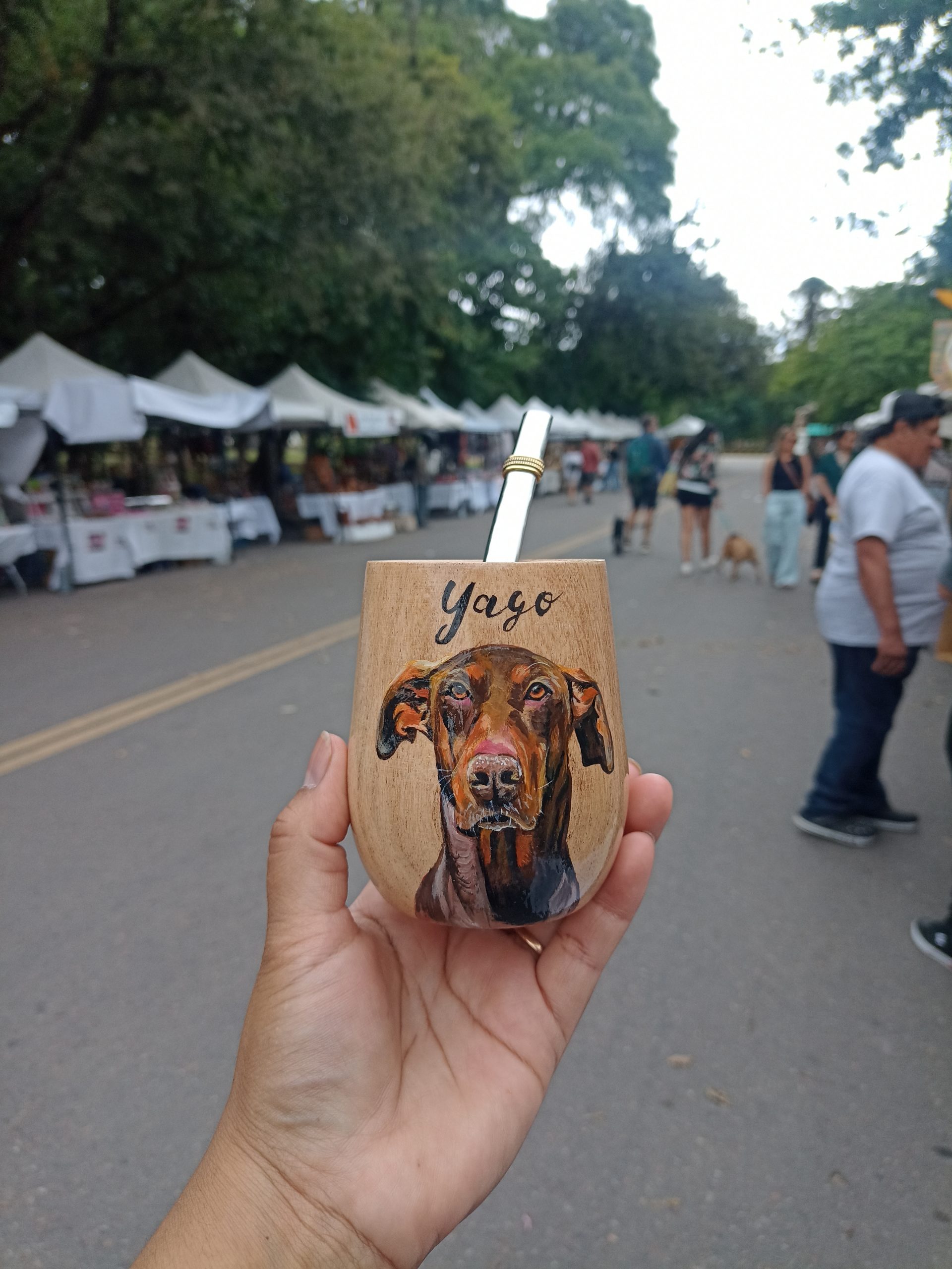 Mates de madera de algarrobo personalizados con la imagen que el cliente desee. Cada matecito es único, totalmente pintado a mano.