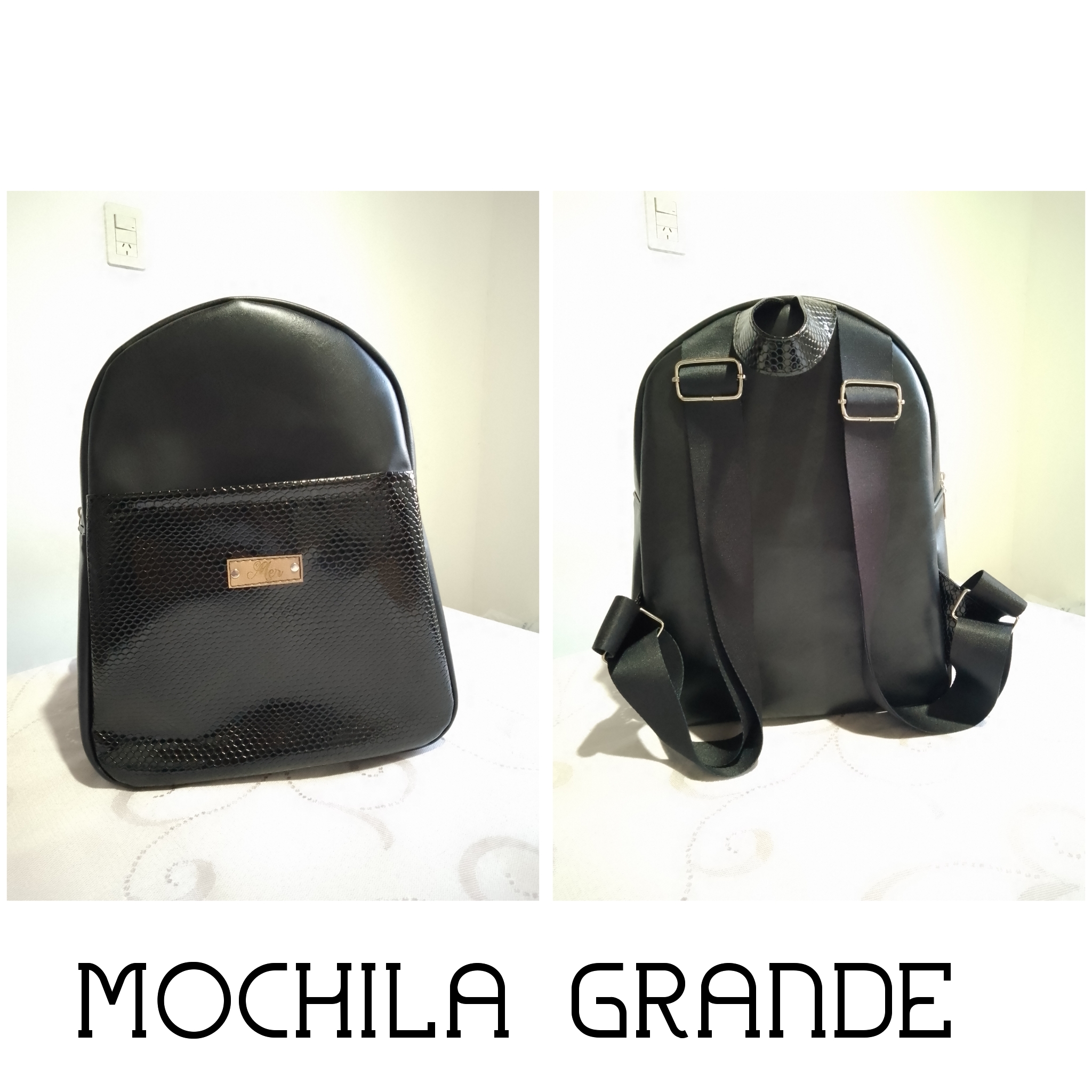 Mochilas oval y cuadradas Material: Eco Cuero Medidas: Mochila oval: 27cm de ancho. 34cm de alto.. 13cm de profundidad Mochila cuadrada: 35cm de ancho…. 31cm de alto….. 9cm de profundidad