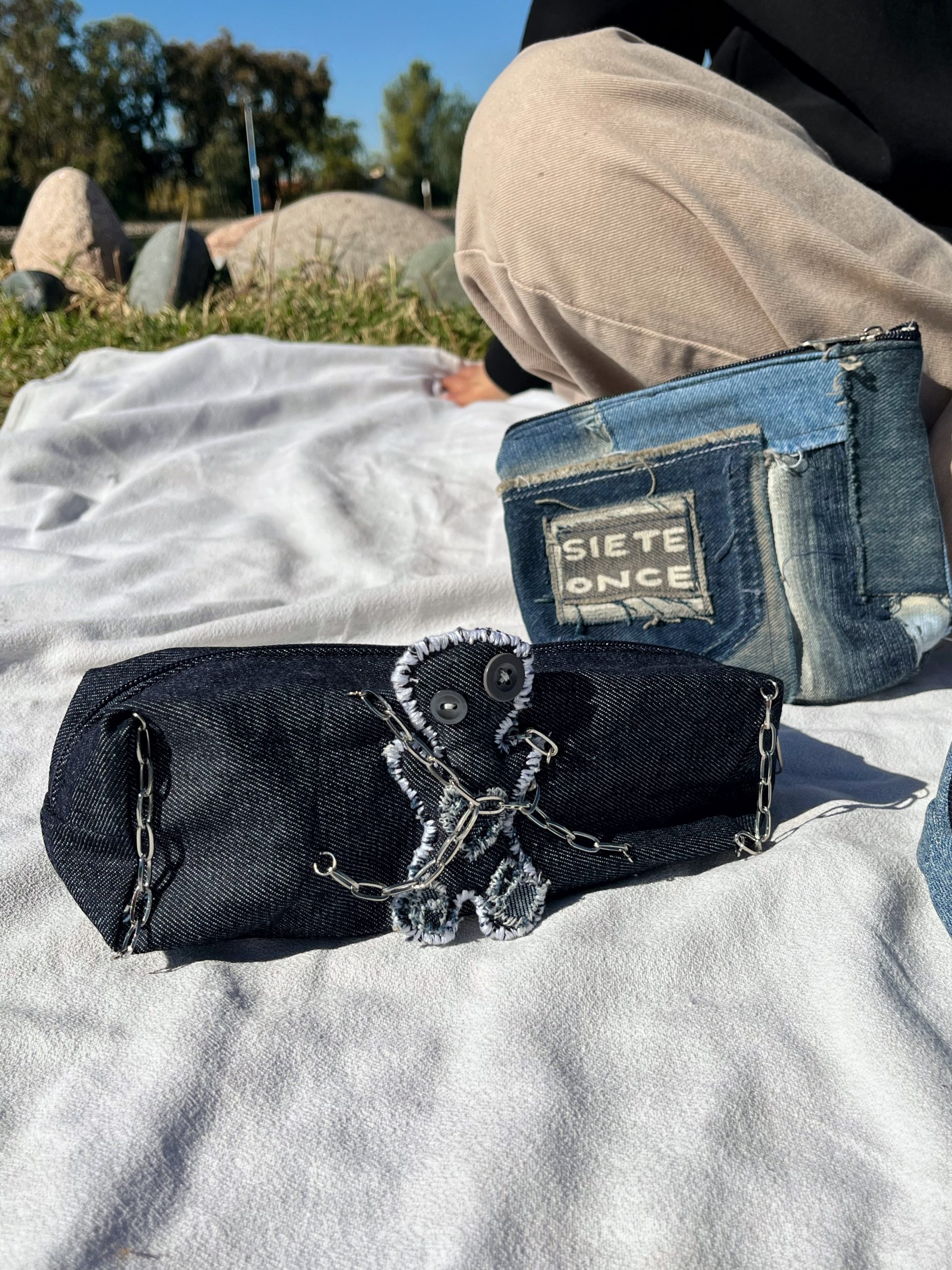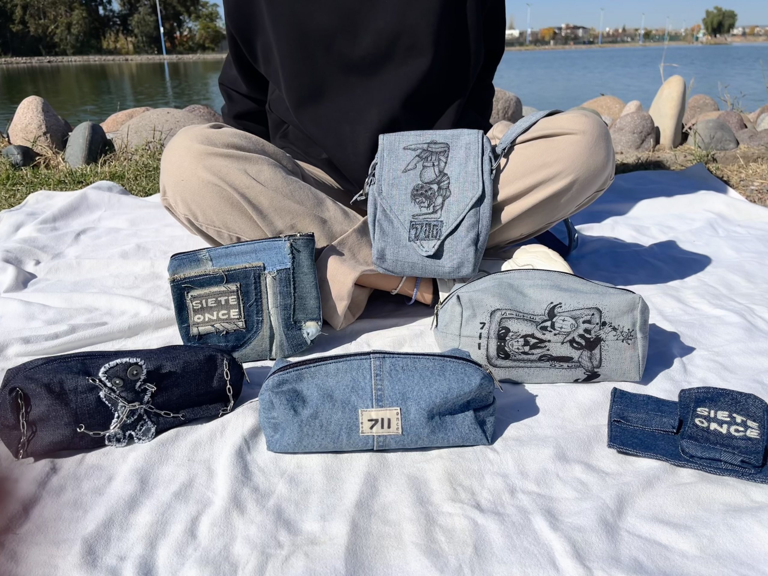 Aplicamos técnicas de costura, pintura y tejido al telar. Para todos nuestros productos ocupamos jeans en desuso, promoviendo un consumo más consciente y sostenible.