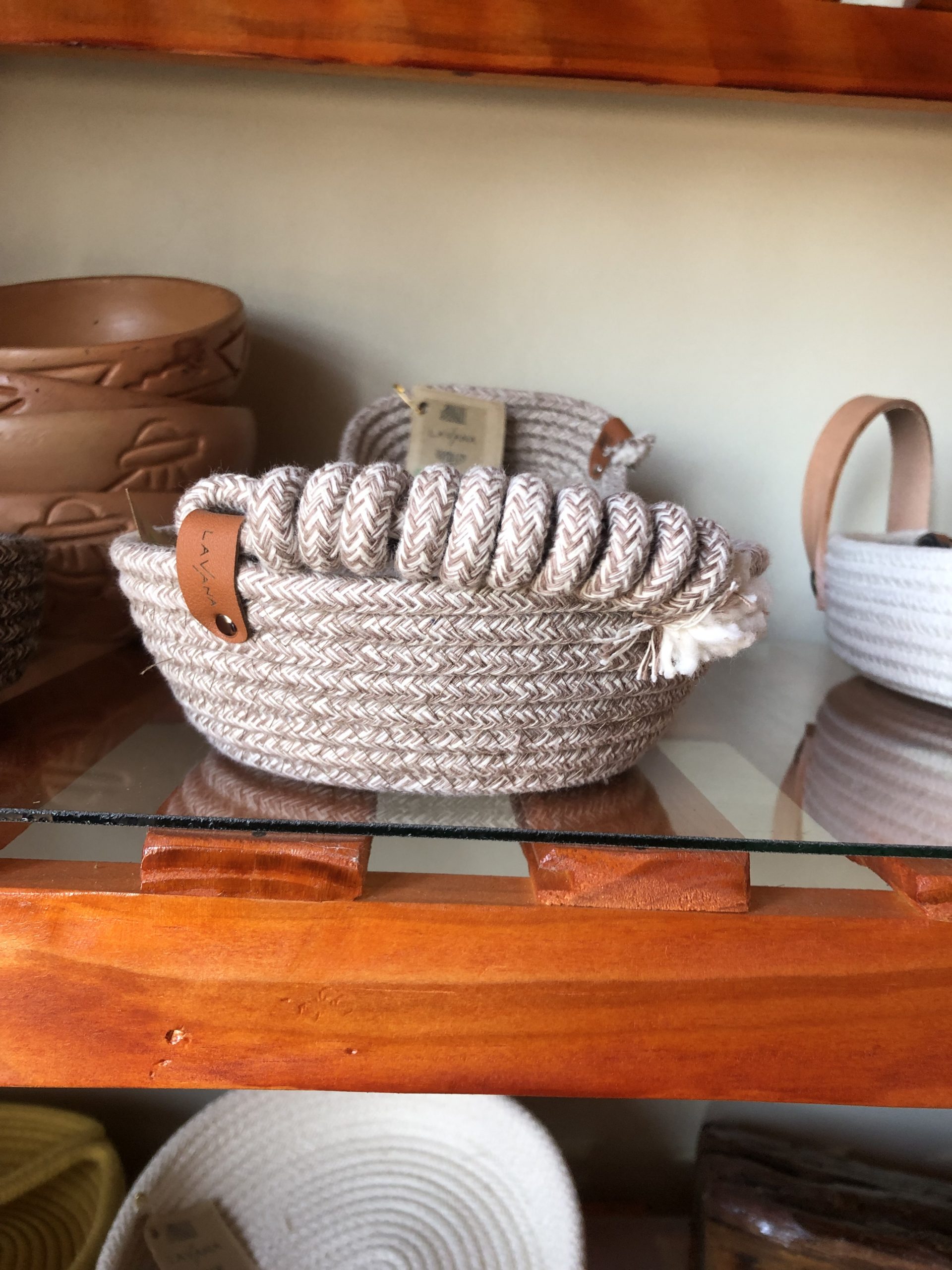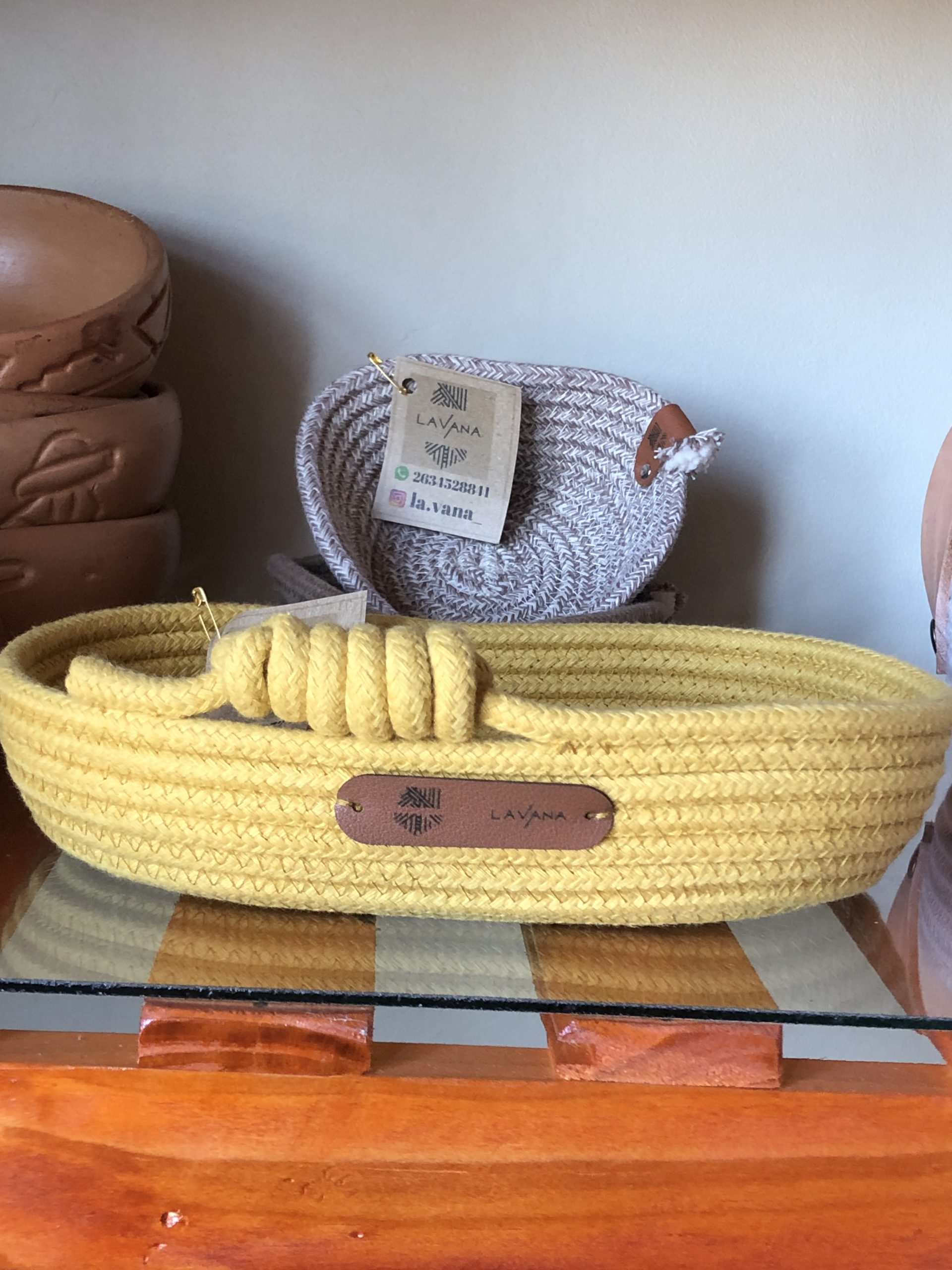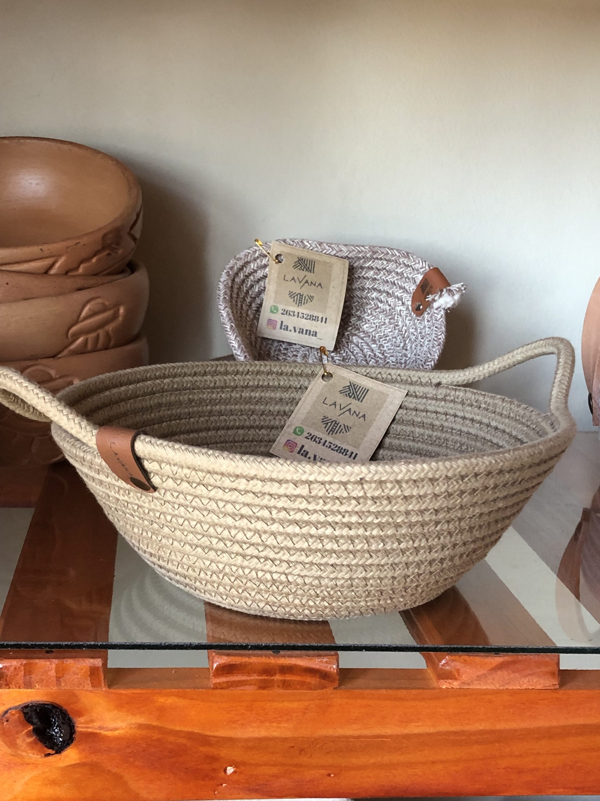 Material: cordón de algodón con alma( relleno de pabilos de algodón) cosido a máquina con hilo resistente n• 50. En forma variadas, ovaladas, miden en su base 16cm x 11cm y 5cm de alto., también redondas o rectángulas o en forma de corazón Combinadas colores cálido, nude.