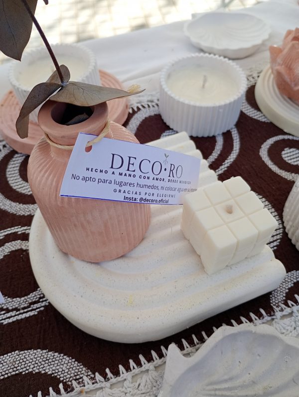 El yeso proviene de la evaporación de aguas superficiales ricas en sulfatos y cloruros, como mares y lagos, que al secarse depositaron el mineral. Utilizo piezas de yeso, agua, pastina ( para darle color) , moldes Mezclo el agua con el yeso Incorporo en el molde de silicona Dejo secar 20 minutos Desmoldo con cuidado que no se rompa Dejo secar una semana sobre una superficie absorbente Le agrego sellador Le agrego laca para que tenga terminación brillante No apto para lugares húmedos ni colocar agua en su interior