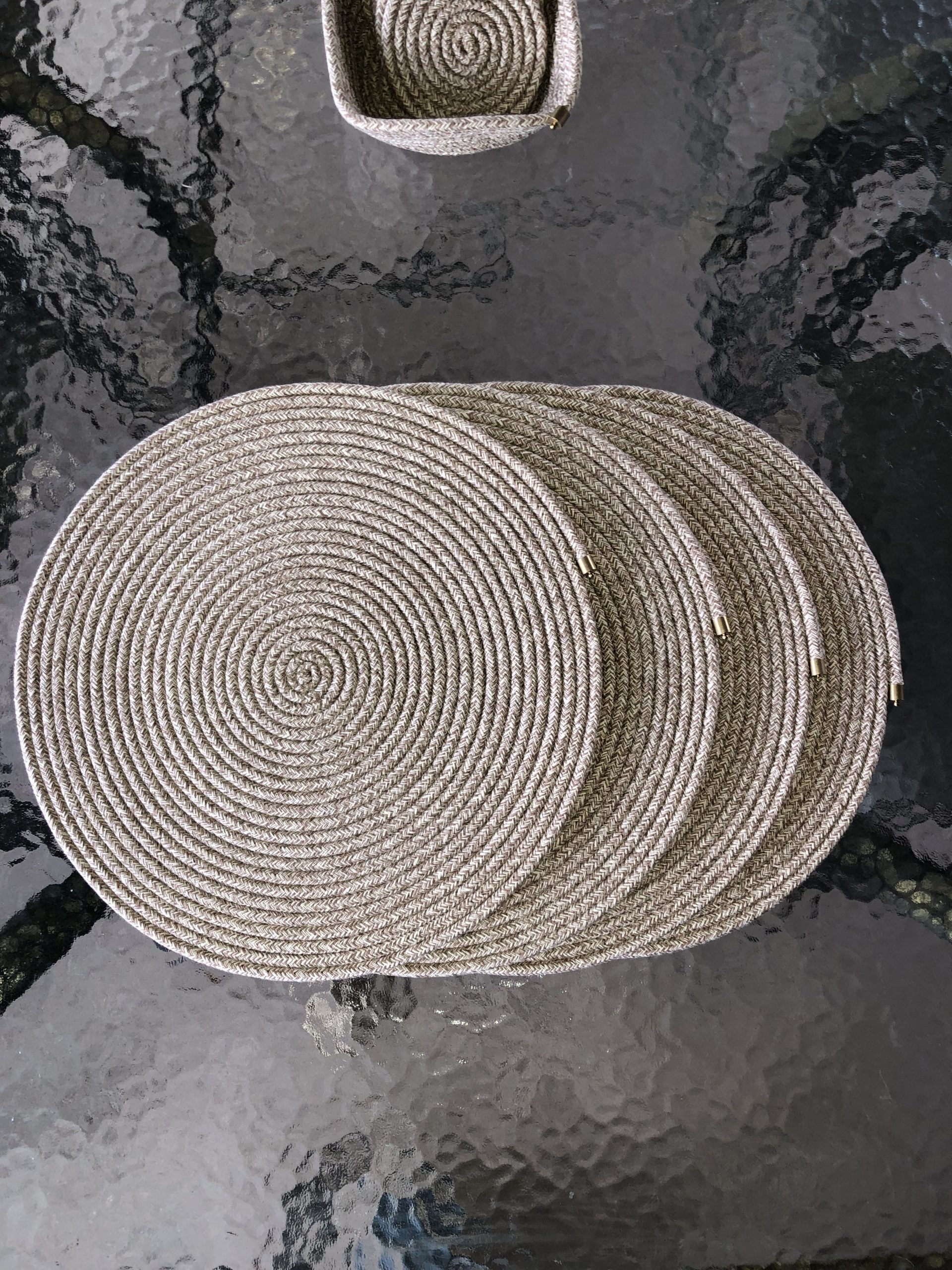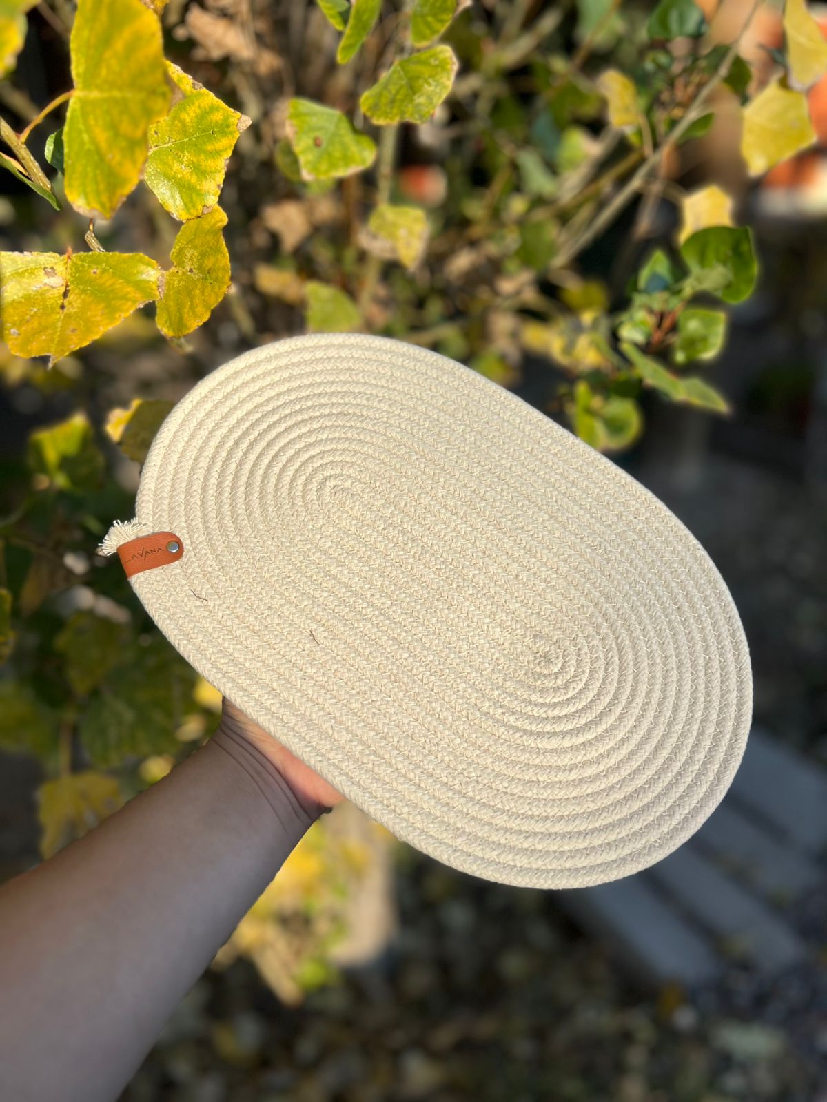 Material: cordón de algodón con alma( relleno de pabilos de algodón) cosido a máquina con hilo resistente n•50. En forma redonda y ovalada de diferentes tamaños y colores cálido, nude. Y combinadas