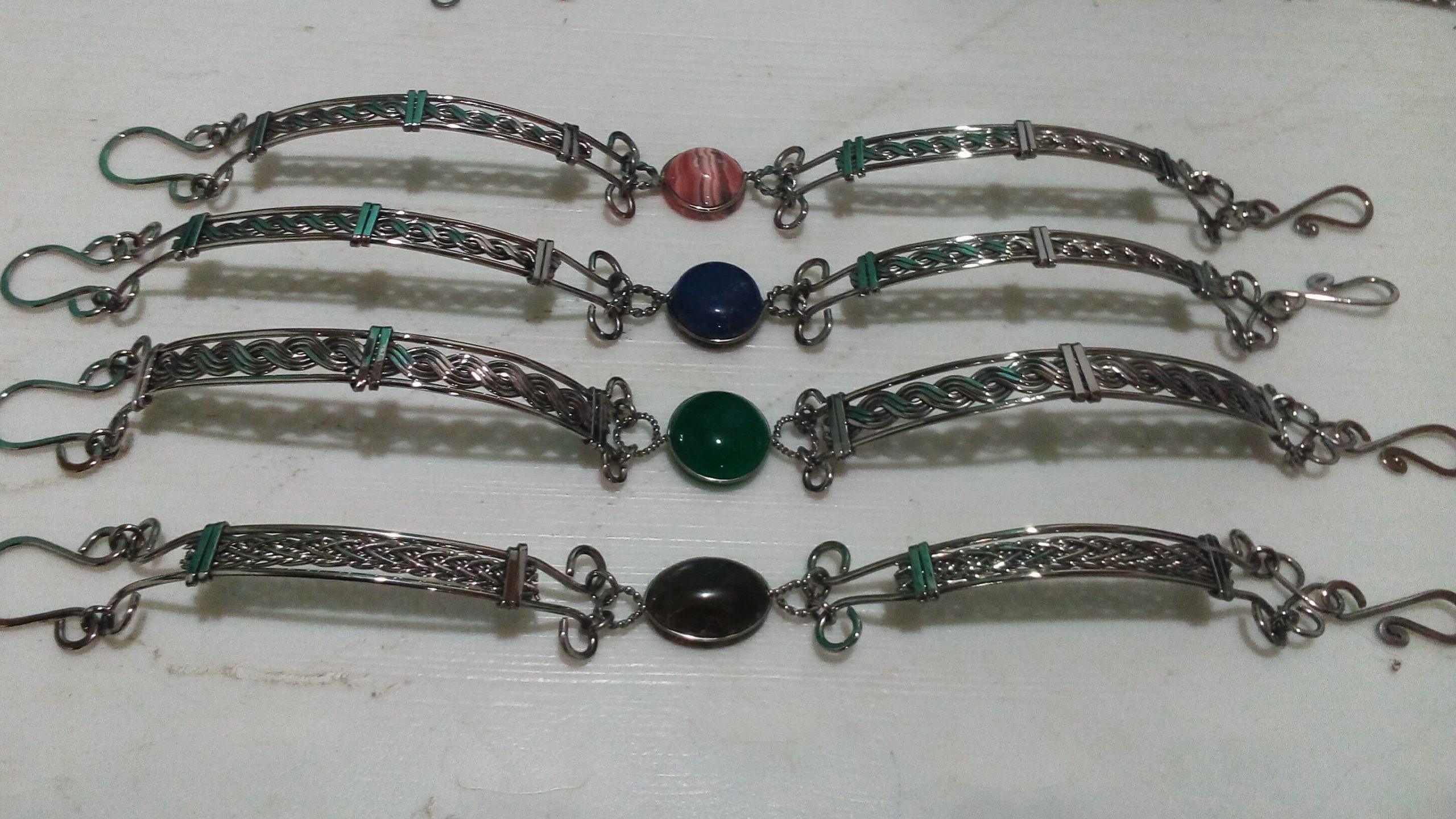 Todo hecho en acero quirúrgico, en la técnica filigrana y alambrismo, joyería artesanal.
