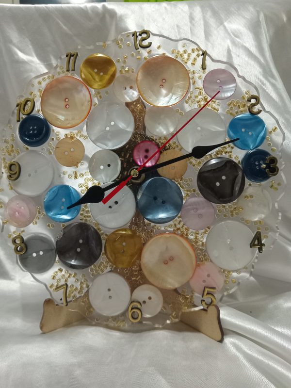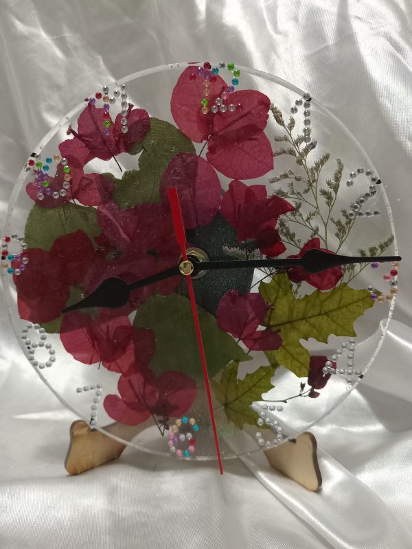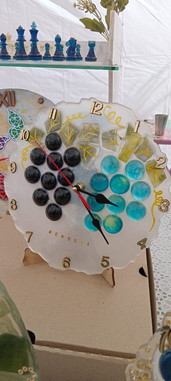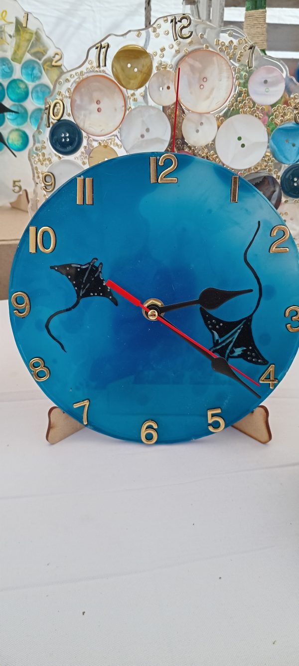 Se realizan fuentes, bandejas, llaveros y sobre todo relojes , combinando encapsulados, pigmentos y distintos colores.