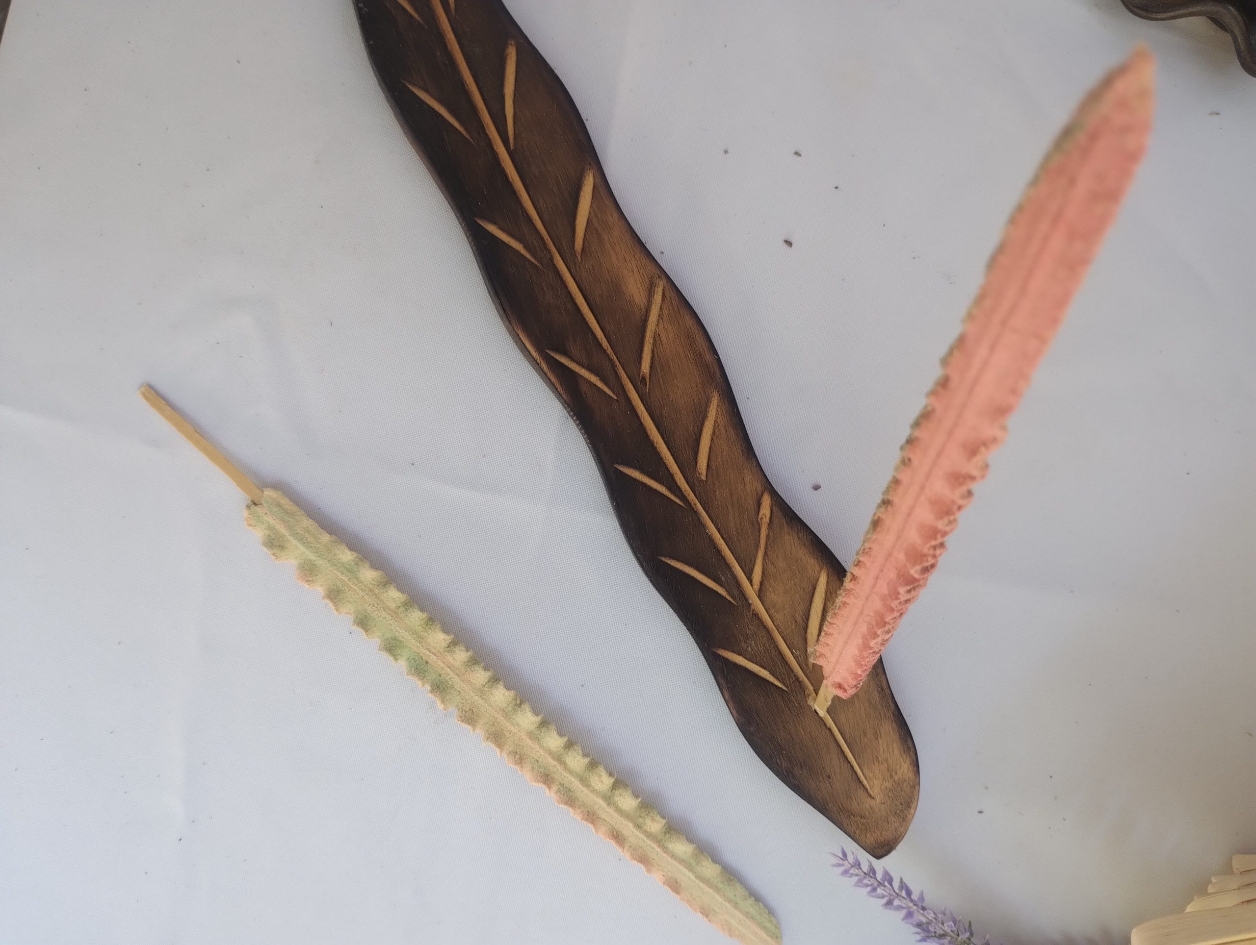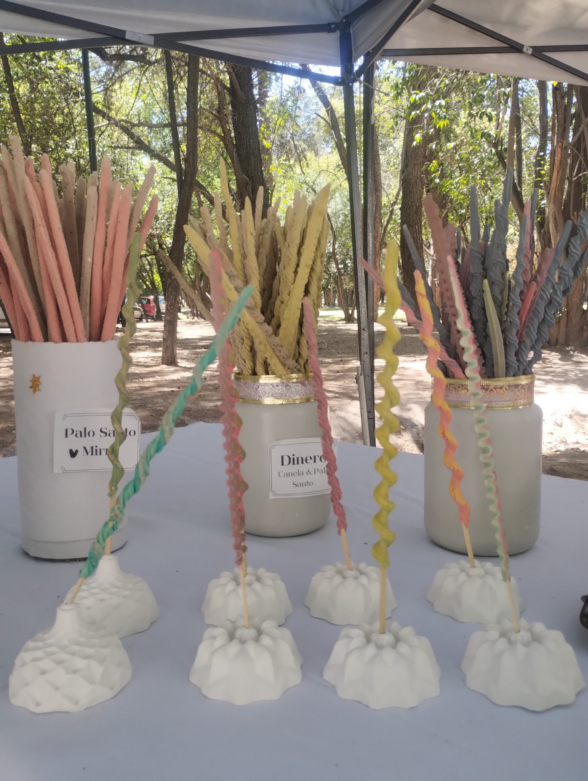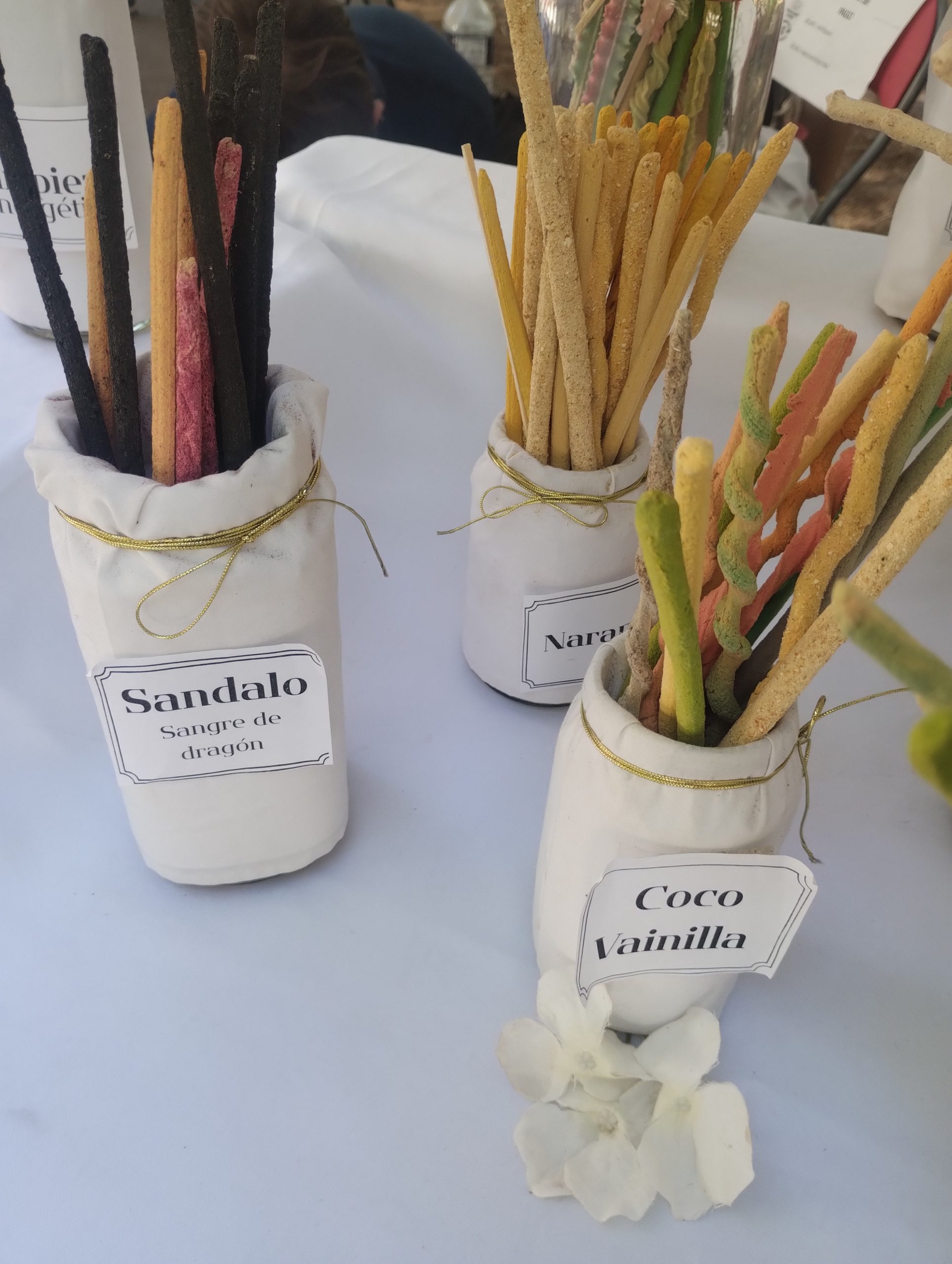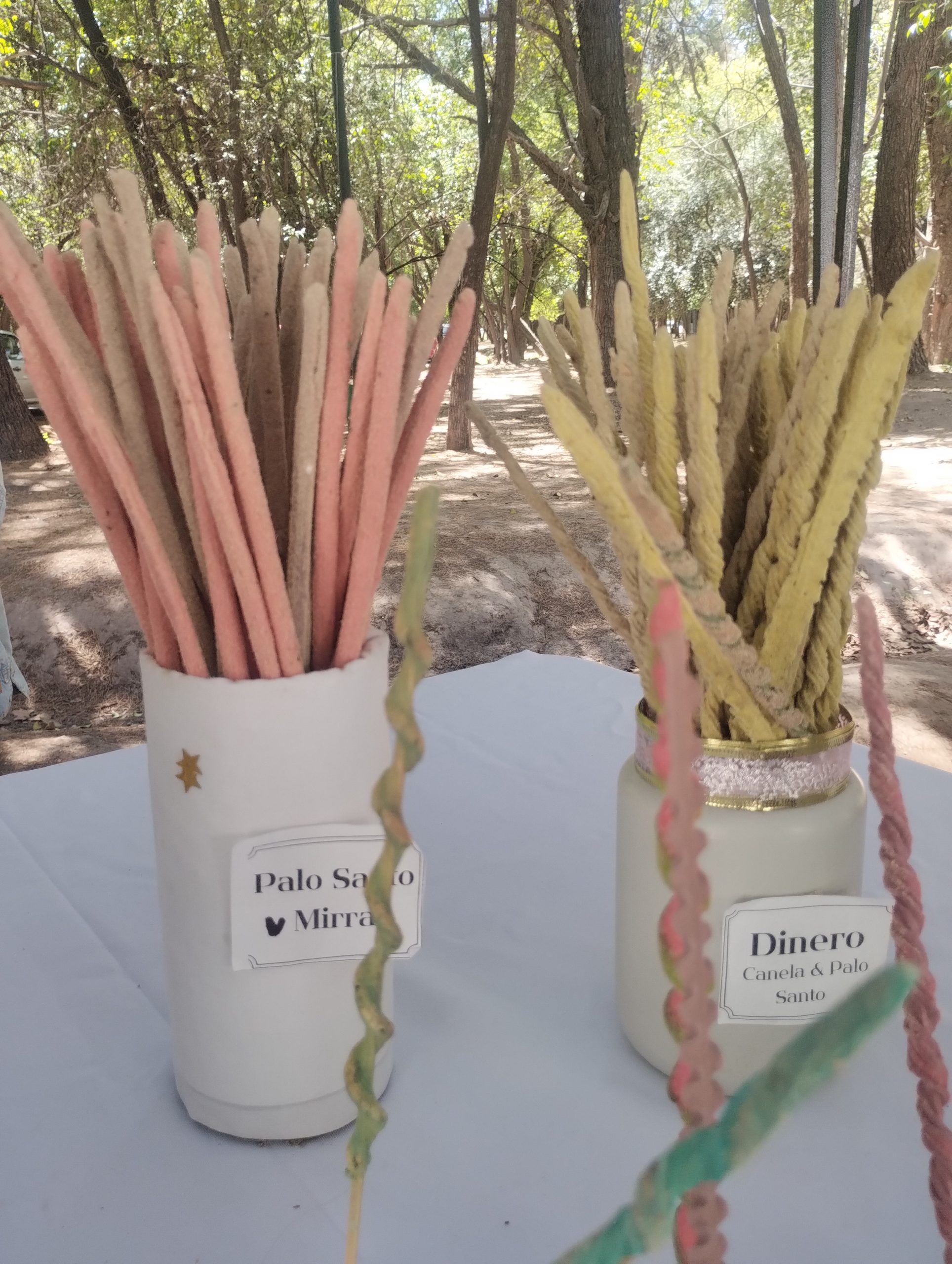 Nuestros sahumerios son artesanales y están hechos completamente a mano, con un proceso consciente y lleno de intención. Arrancamos preparando la masa, que lleva harina de pino 120 y goma xántica. Aparte disolvemos una pequeña cantidad de nitrato de potasio en agua, que es lo que permite una buena combustión. Mezclamos todo hasta lograr la consistencia justa y, con una manga pastelera, les damos forma uno por uno. Una vez formados, los dejamos secar entre 2 y 3 días. En paralelo, preparamos la maceración: una mezcla de esencias aromáticas con alcohol de cereal, que se deja reposar durante 7 días para que los aromas se integren bien. Cuando los sahumerios ya están secos, los sumergimos en esta maceración y luego los dejamos secar nuevamente durante 2 días más. Es un proceso que lleva tiempo, cuidado y paciencia, pero que da como resultado sahumerios de aroma intenso, combustión pareja y una energía especial, hechos con amor y dedicación.