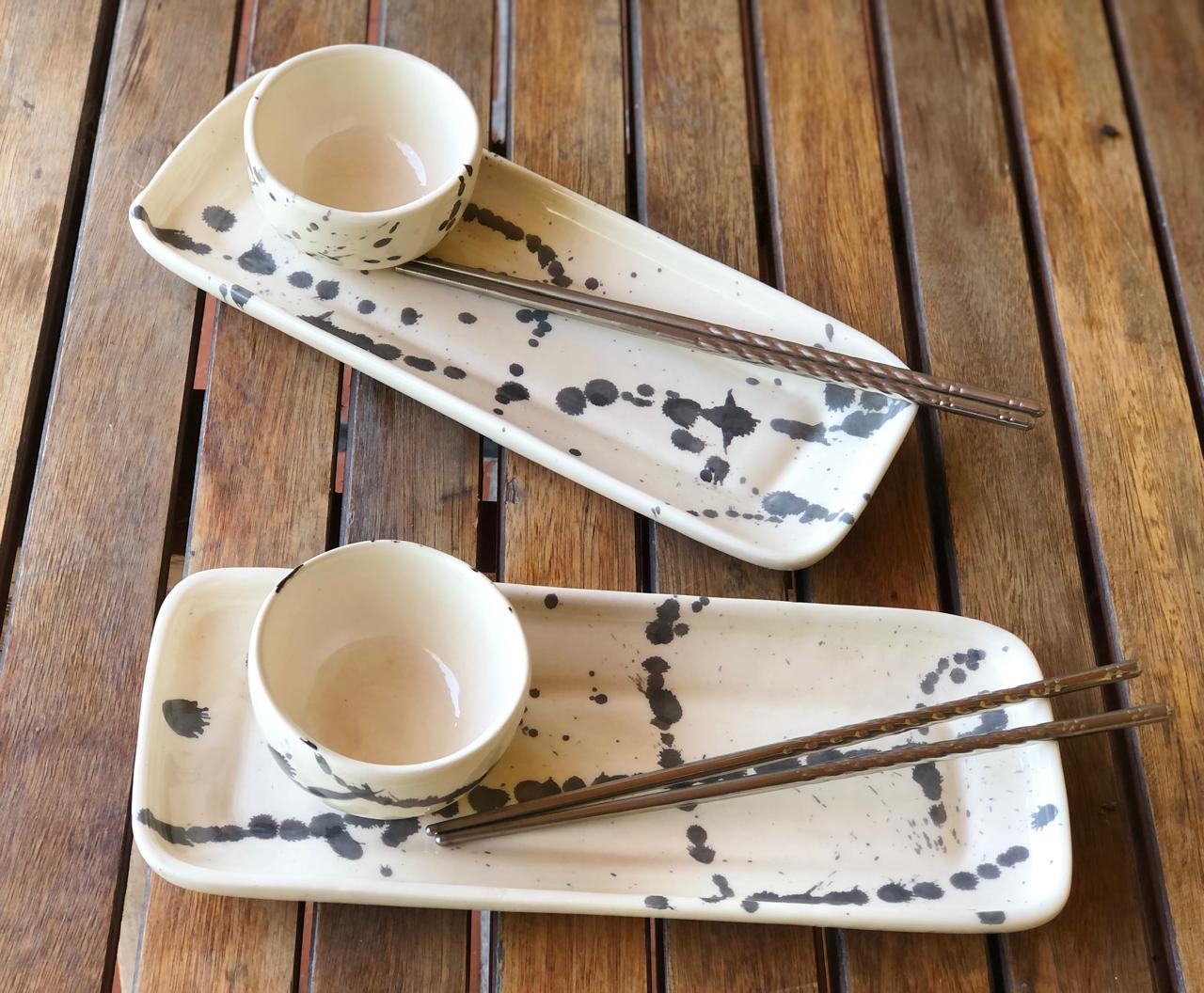 Set fabricado en Cerámica de baja temperatura.Realizado por metodo de moldeo y Pintado a mano