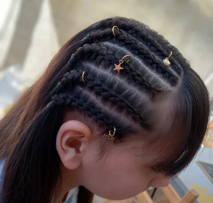 Dejando hermosos estilos en el cabello y dándole un toque único con nuestros dijes y argollas.
