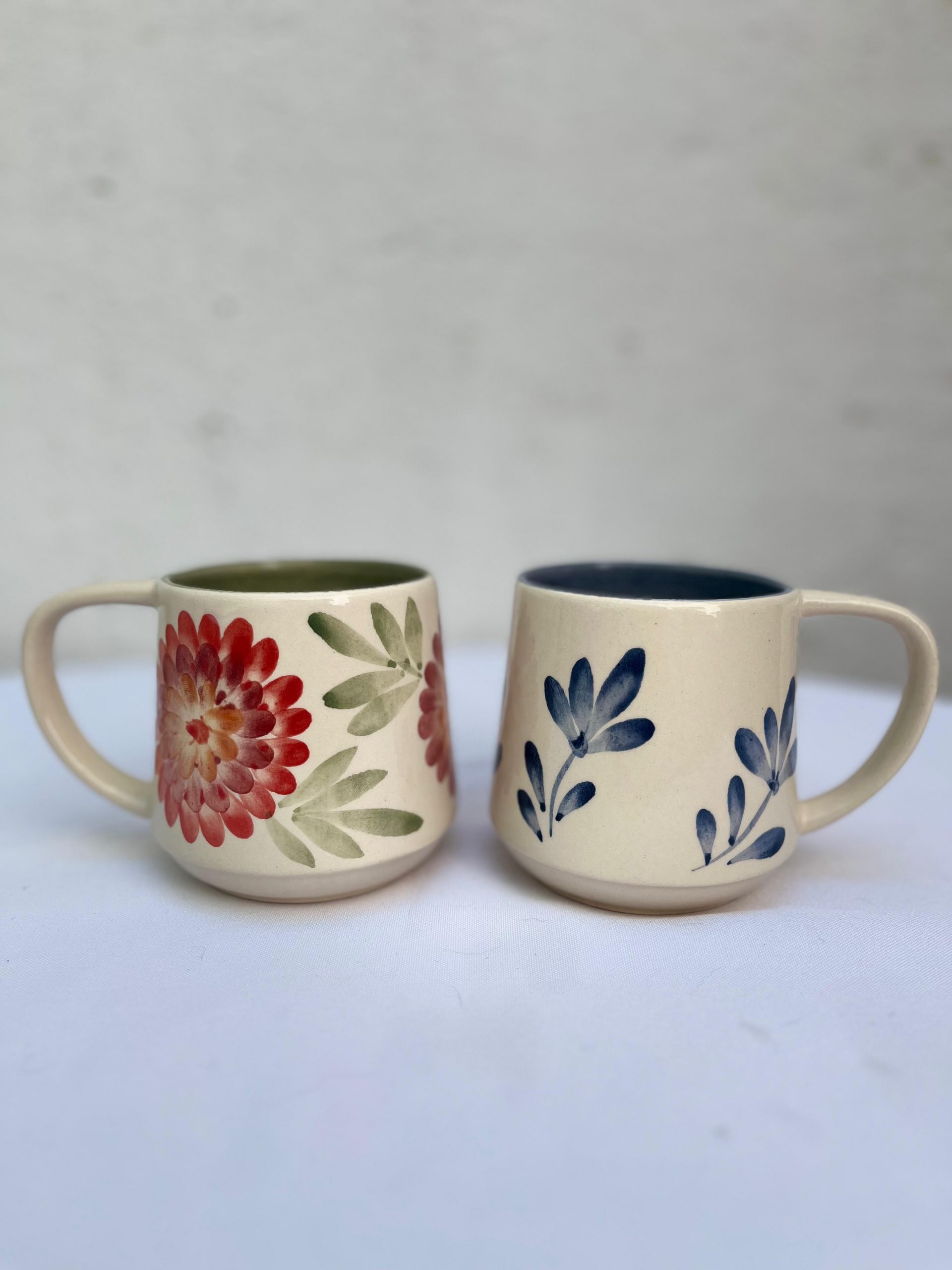 Taza panzona de cerámica artesanal, realizada en barbotina líquida y pintada a mano, con esmaltado de alta calidad. Capacidad: 300 cc. Ideal para disfrutar bebidas calientes con una forma cómoda y súper cálida en la mano.