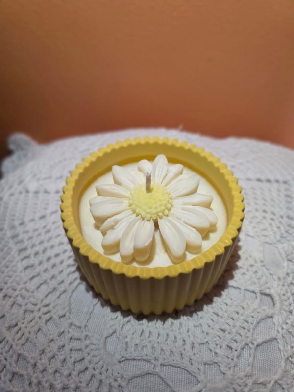 Vela elaborada con cera de soja en envase de yeso. Medida: 7cm de ancho x 4cm de alto. Proceso de elaboración: En un recipiente a baño maría se coloca la cera con medidas exactas a temperatura entre 80° y 70°, luego entre 60° y 65° se agregan las respectivas medidas de endurecedor, fragancia y colorante, hecho previamente en recipientes separados. Las mismas se mezclan durante 2 minutos y a una temperatura de 45° a 50° se vierte en envase con su respectivo pabilo, el tiempo de estacionamiento es de 15 a 20 días. Envase de yeso. Medida: 4cm de alto x 7cm de diámetro. Proceso de elaboración: Se coloca las medidas en recipientes, 39g de agua y 56g de yeso, se deja reposar 1 minuto hasta que el agua absorba el yeso, se mezcla y se vierte en el molde de silicona. Desmoldar de 30 a 60 minutos, secado total 24 horas. Sellado del envase con sellador al agua.