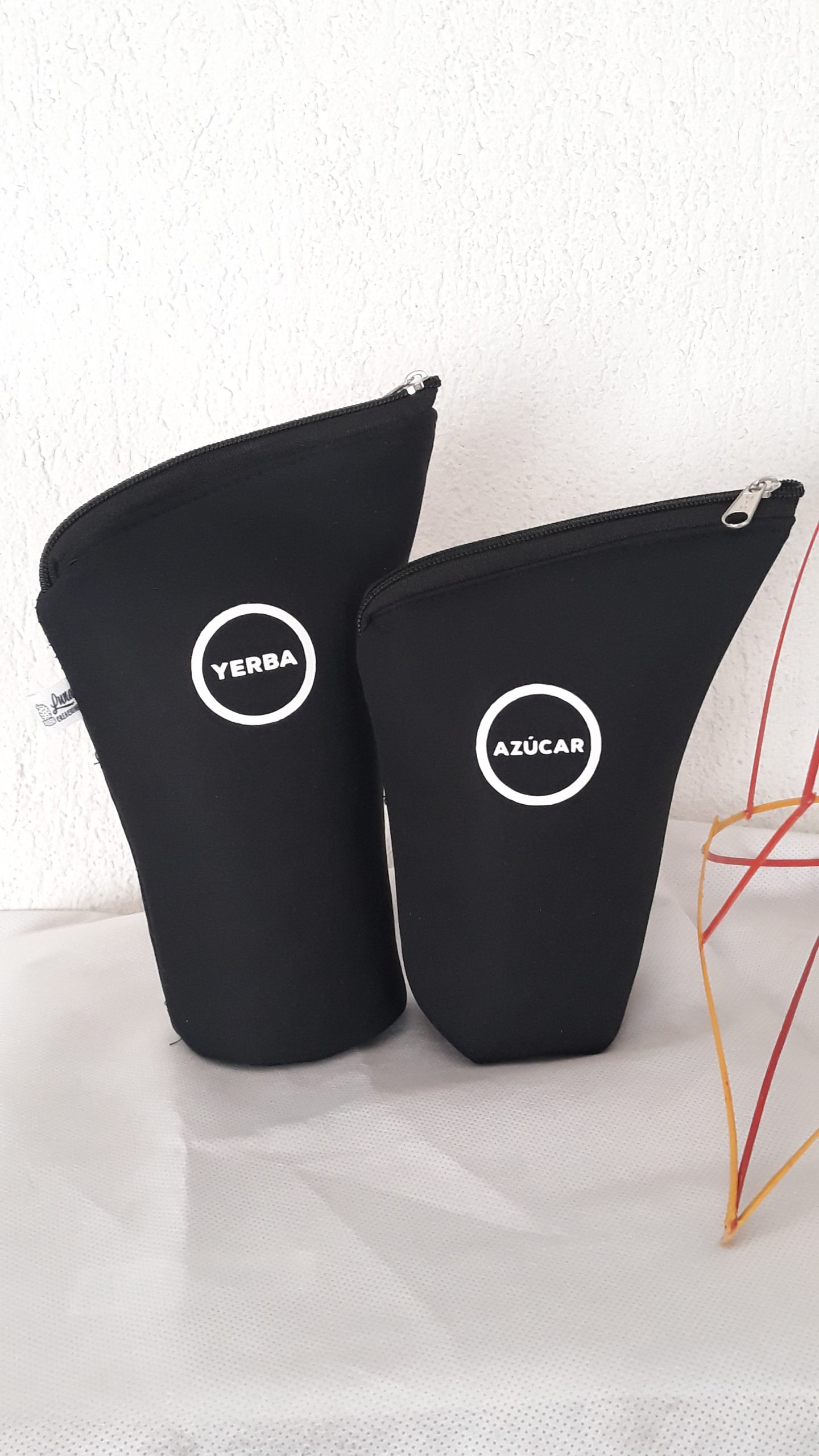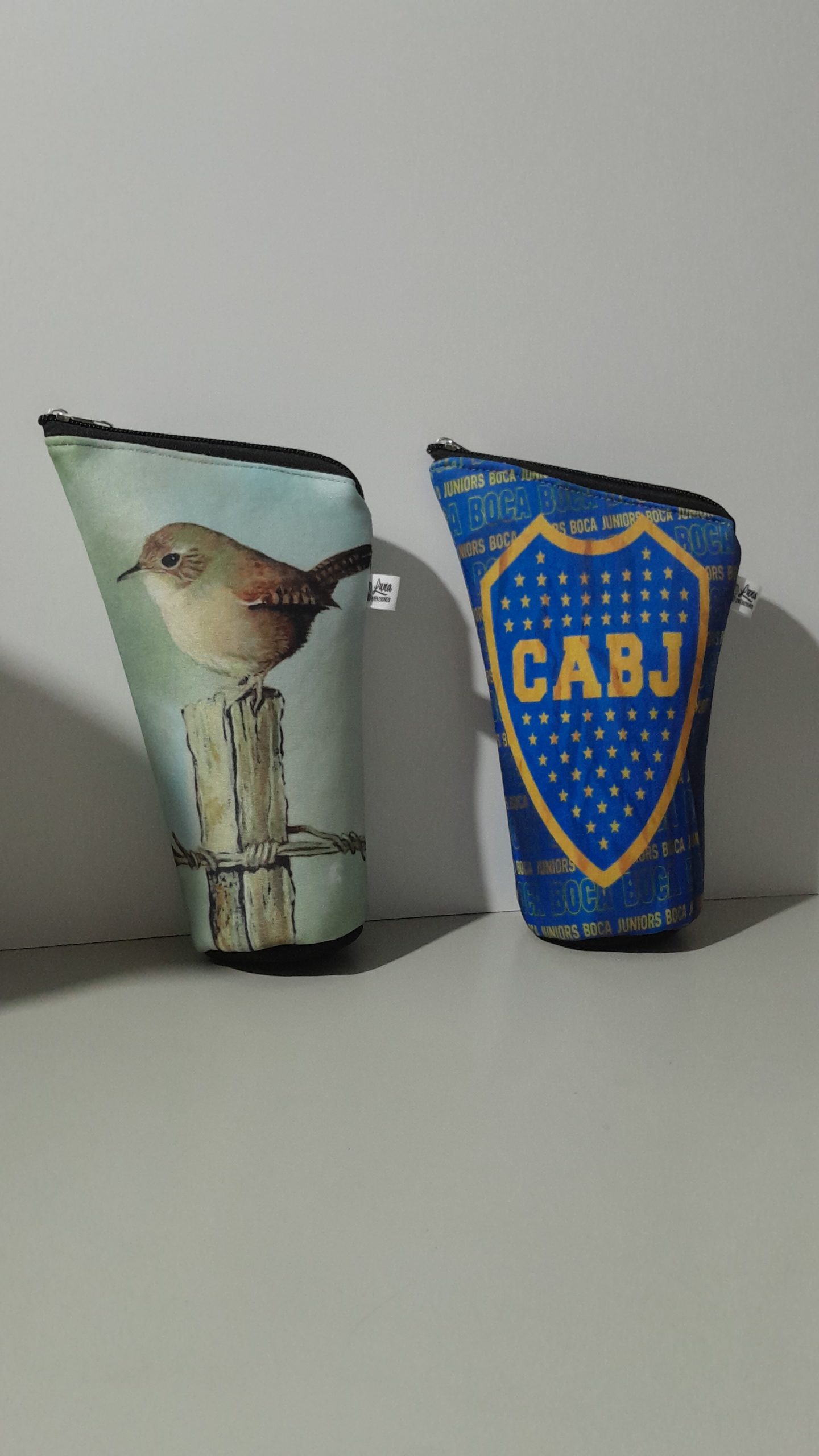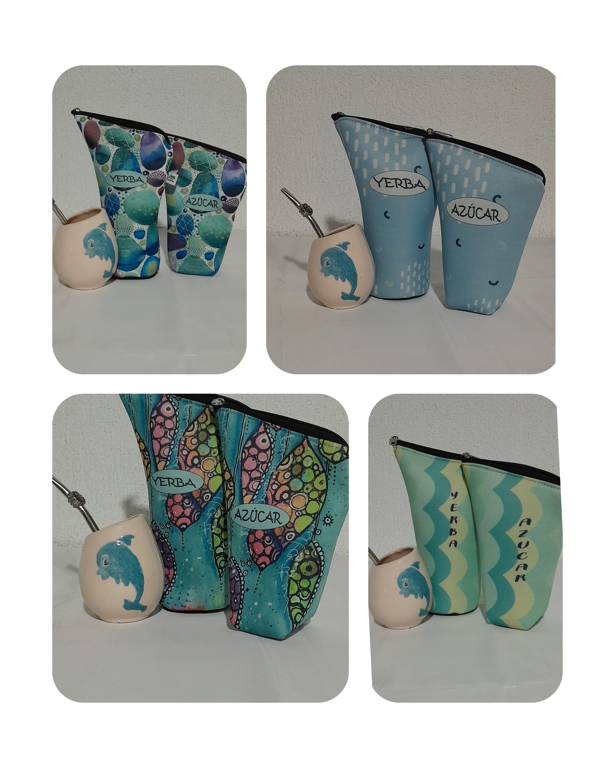 Se confeccionan en simil neopren sublimados, corduras , eco cuero y su interior en silver qué es impermeable